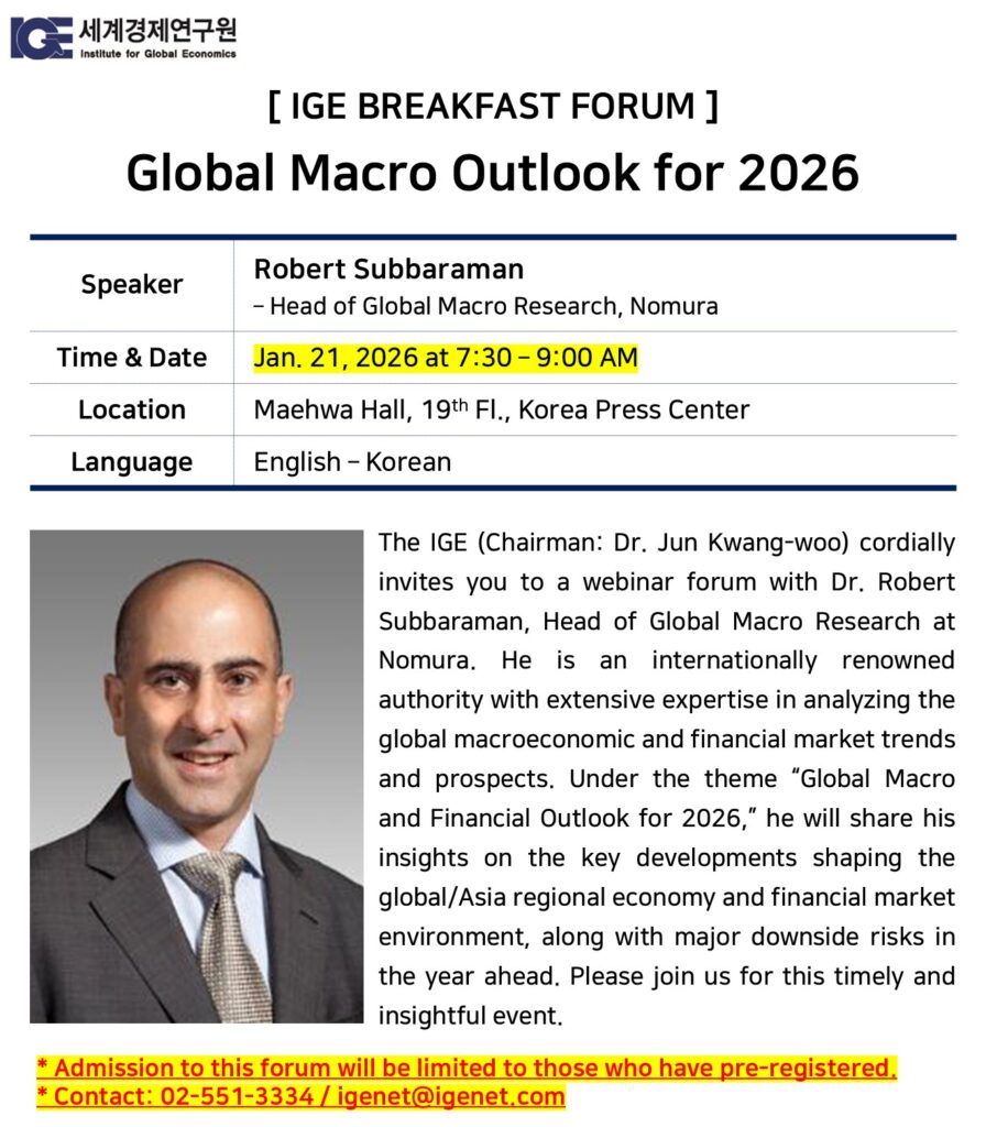 Institute For Global Economic publishes and distributes special lectures and contents of the international community to the government, industry, academia and other sectors of our society as a national/English translation.
