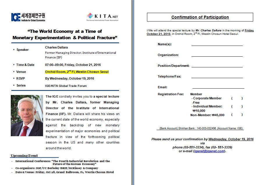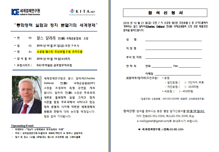[10월 21일(금)] 찰스 달라라 전 국제금융협회(IIF) 초청 조찬강연회